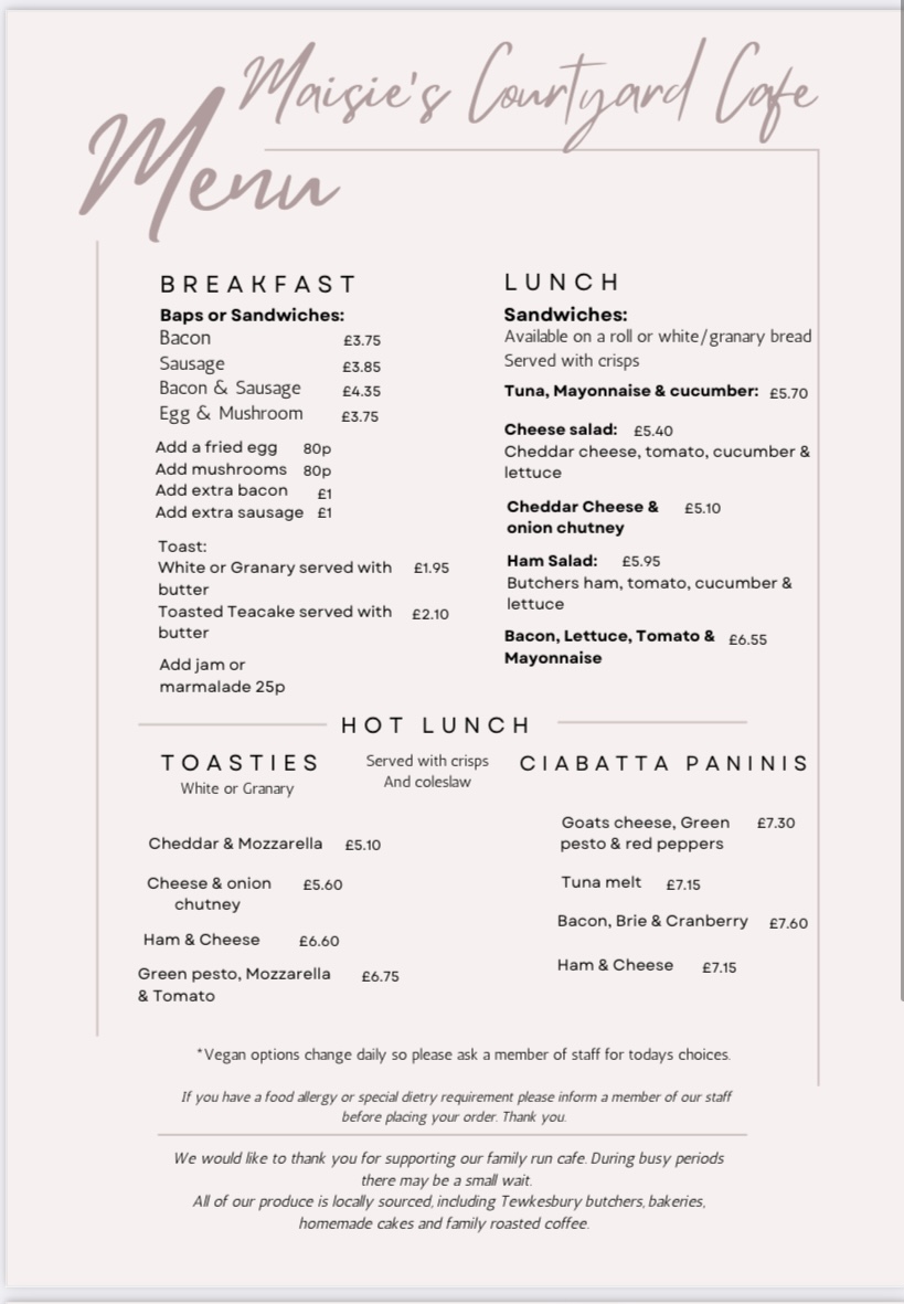 Maisie's Courtyard Cafe Menu